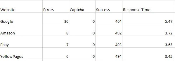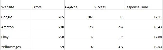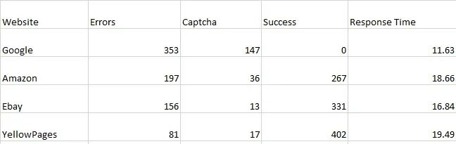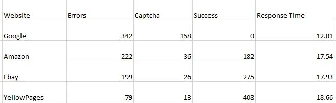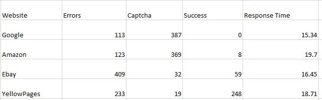 In this post, we will test all these proxies on websites like Google, Amazon, eBay, and Yellowpages. We will create a web scraper to make 500 requests to each website and then we will judge them on the basis of errors, captcha, success, and response time. We have created a web scraper using Python; you can choose any language you like.