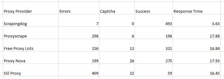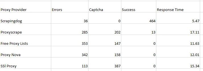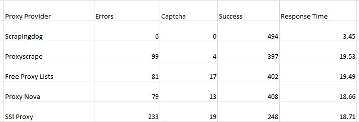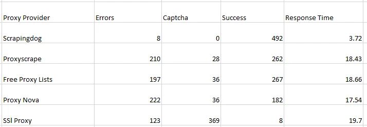 As you can see, most of the free web proxies cannot scrape Google and Amazon except Scrapingdog. Many of them are already used for scraping Google or Amazon, and now they are permanently banned. While selecting a proxy provider, we mainly focus on the validity of the proxy. Getting captchas and errors on every request is frustrating.