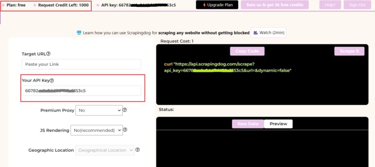 To get around this, we can use Scrapingdog web scraping API. Let’s see how Scrapingdog integration can help you bypass these obstacles.