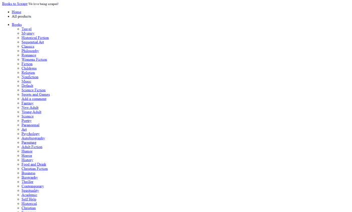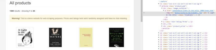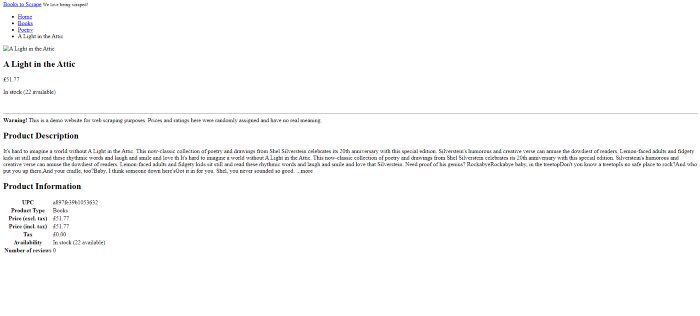 In this example, we will scrape this website. As explained earlier we will open the website and then click on the first book “A Light in the Attic”.