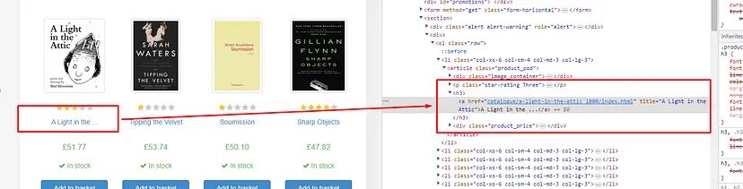 Now, we have to design a pattern through which we can extract the title and the price of the book from the HTML content. First, let’s focus on the title of the book.