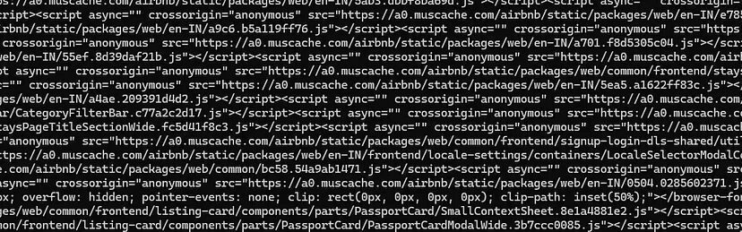 The above approach for scraping Airbnb is fine but this approach will not work if you want to scrape millions of pages. Airbnb will either block your IP or your resources will not be enough for you to get the data at high speed.