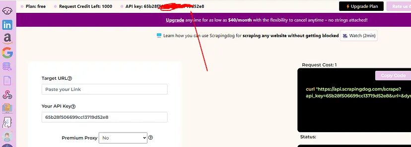 Using Scrapingdog is super simple. To get started with Scrapingdog you have to sign up for an account. Once you sign up you will get free 1000 API credits which is enough for initial testing.