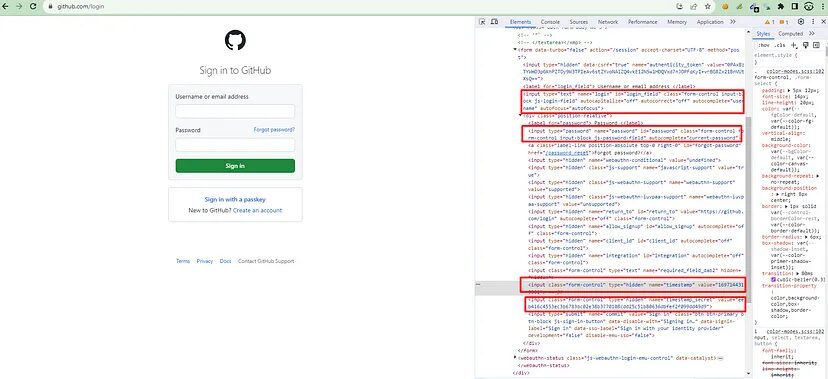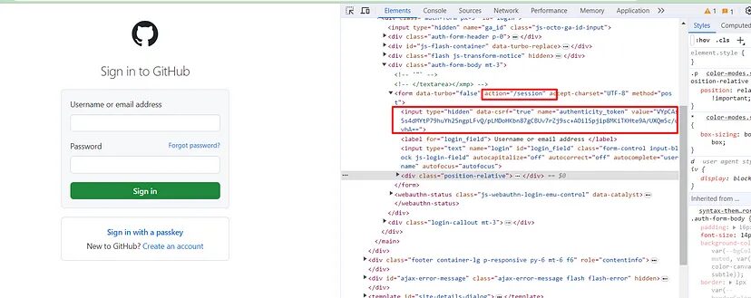 Well CSRF protection is often implemented using tokens that are included in forms. Inspect the HTML source code of web pages and look for hidden input fields within forms. These hidden fields typically contain the CSRF tokens. Open https://github.com/login and then click inspect by right-clicking on the mouse.