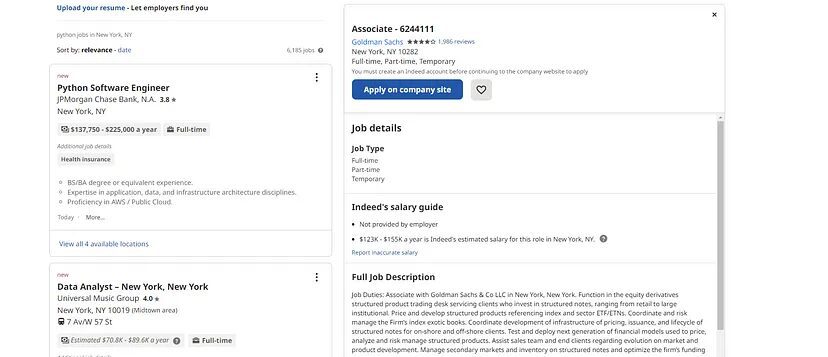 job_search_url = "https://www.indeed.com/jobs?q=python%26l=New+York%2C+NY%26vjk=8bf2e735050604df"