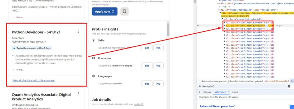 At the end of this tutorial, we will have all the jobs that need Python as a skill in New York.
