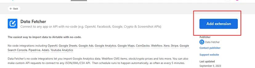 Quickly Install this extension to your Chrome browser. This extension is Data Fetcher and it can help you import data from Scrapingdog’s API directly to Airtable. Isn’t that fantastic?