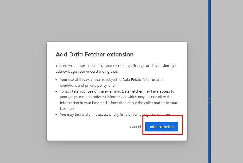 After clicking on Add extension you will be redirected to your project page on Airtable. Now, click on Add extension again.