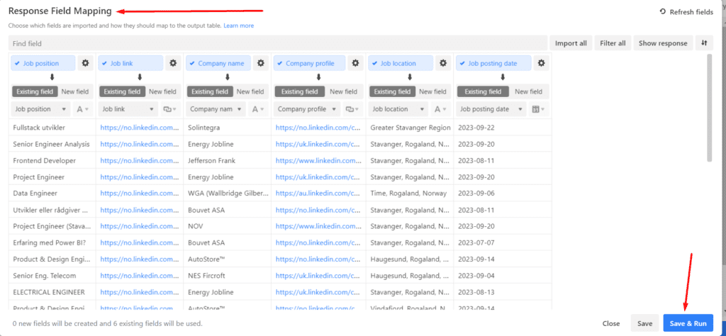 Once done click on Save and Run from the bottom right. After that a tab will appear with the name “Response field Mapping”, you need to click Save & Run again here. (please refer screenshot below)