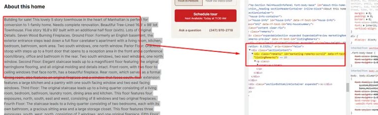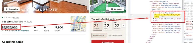 In this blog, I have scraped two distinct types of pages on Redfin: the search page and the property page. Moreover, I have included a bonus section that sheds light on extracting information that’s dynamically loaded through AJAX injections.