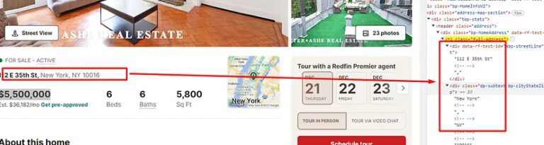In this tutorial, we are going to scrape two types of pages from redfin.com.