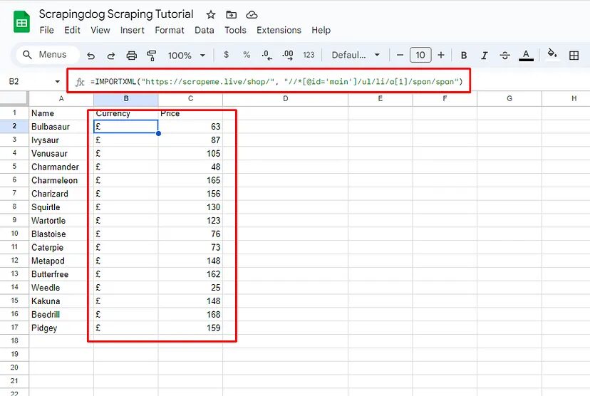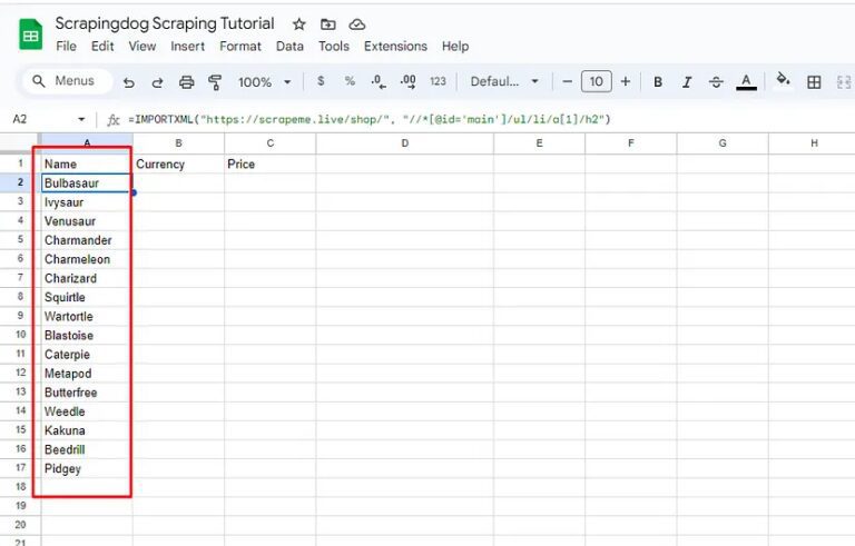 We can see Bulbasaur being pulled from the target web page in the A2 cell of the sheet. Well, this was fast and efficient too!