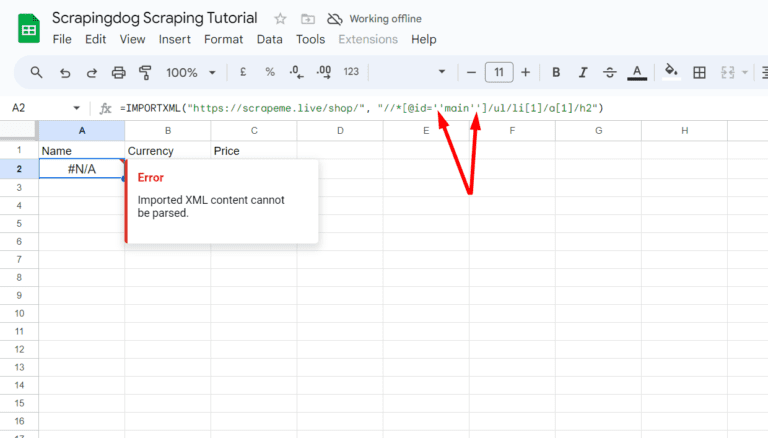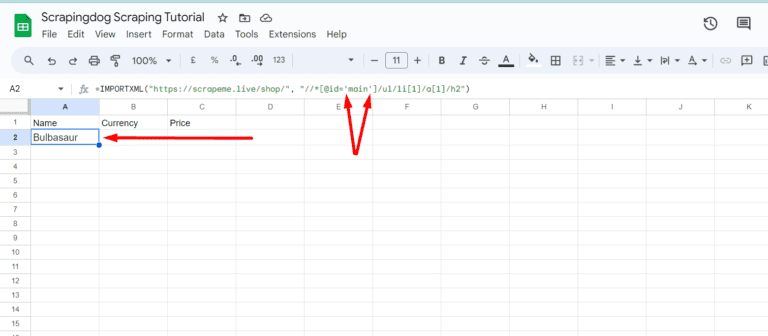 This section will be divided into two parts. In the first part, we will use IMPORTXML for scraping, and in the next section, we will use IMPORTHTML for the same.