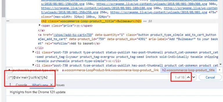 Now, the question is how to pull all the names. Do we have to apply a different xpath_query for each Pokemon present on the target page? Well, the answer is NO. We just have to figure out an XPath query that selects all the names of the Pokemon at once.