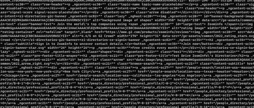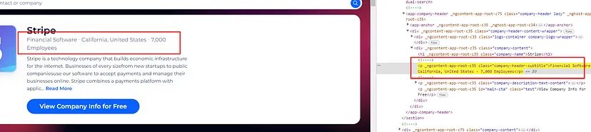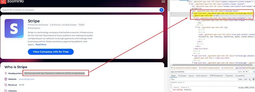 Scraping zoominfo provides a lot of data for any company and it is always great to decode what exact information we need from the target page.