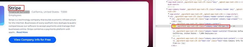 - The code then tries to find the company name within the parsed HTML using