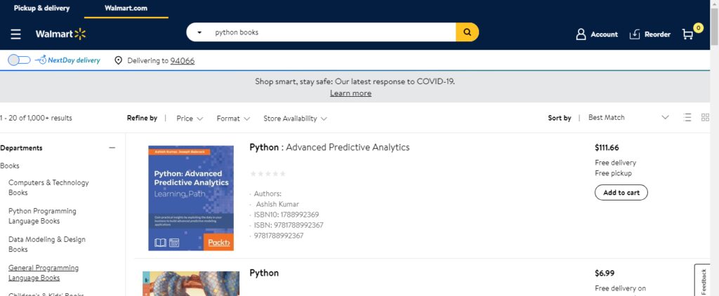 We are going to extract the Python Book price and title from Walmart via selenium.