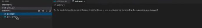 The next command to execute the file will be ./goscraper and a tab for compilation.